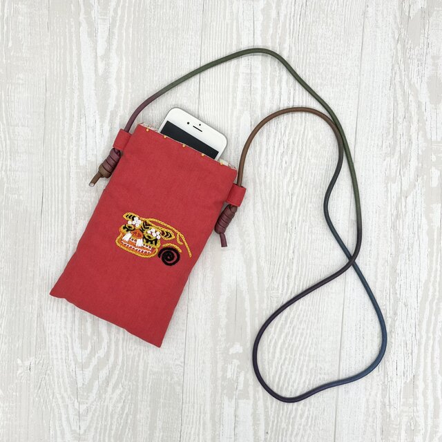 手刺繍スマホショルダー 虎獅子