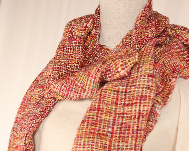 手織りきびそシルク ヘリボーン柄マフラーキビソ糸のマフラーは、趣があります。ふわふわ暖かで、それでいて、なめらかさもあってつけ心地いいです。これからの季節重宝します。ありがとうございました。