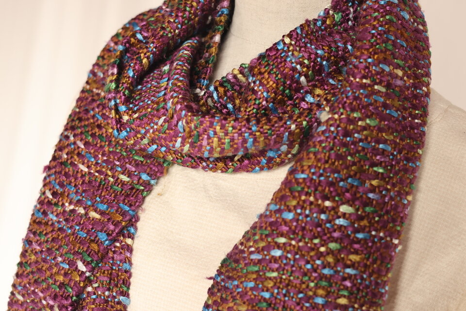 4枚綜絖で織りあげた温かみのあるヘリボーン柄マフラー