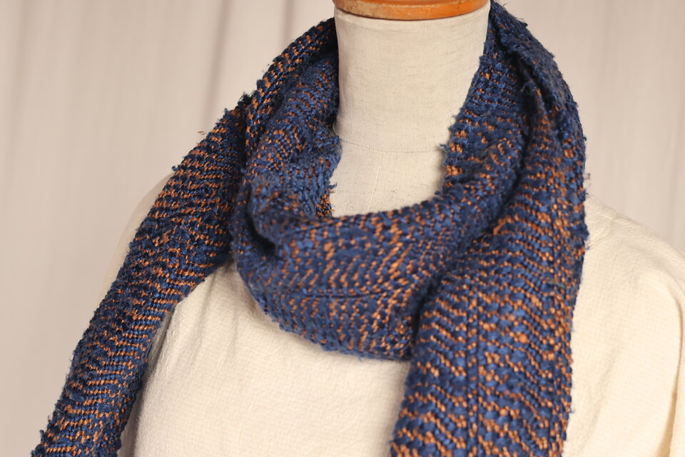 4枚綜絖で織りあげた温かみのあるヘリボーン柄マフラー