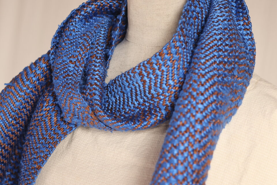 4枚綜絖で織りあげた温かみのあるヘリボーン柄マフラー