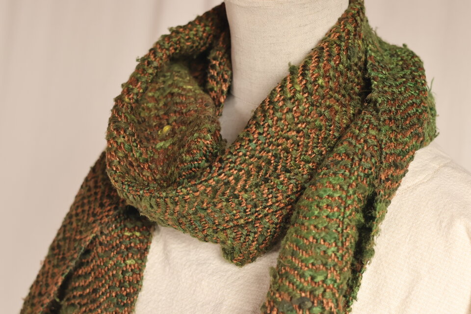 4枚綜絖で織りあげた温かみのあるヘリボーン柄マフラー