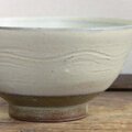 素地に櫛目模様を描き化粧泥を掛けてから蘭越釉を施釉して焼成しています。
