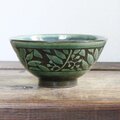 器全体に化粧泥を掛けナナカマドを描いてから余分な化粧泥は削り落として図柄だけを残しています。