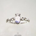 繊細な結晶を内包したデュモルチェライト イン クォーツを、唐草の細身のリングにセットしました。