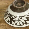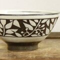 器全体に化粧泥を掛け、ナナカマドを描いてから余分な化粧泥は削り落として図柄を残しています。