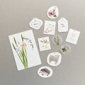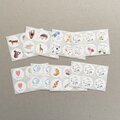 20種類(水仙、梅、椿、ばら、桜、ミモザ 、オリーブ、レモン、アンティークフラワー、ハート、パン、うさぎ、ひつじ、牛、ねこ、なまけもの、はりねずみ、葉っぱととり、きりん、いぬ)各1枚