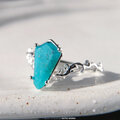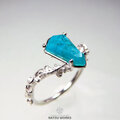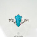 明るいブルーのクリソコラカルセドニー / ジェムシリカを、唐草の細身のリングにセットしました。