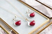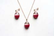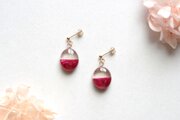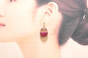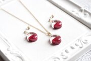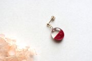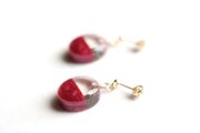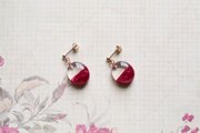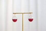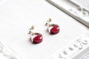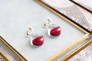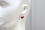 透明な上半分と、しっとりとした情緒的な光沢のある赤という下半分とのコントラストが鮮やかなピアス。