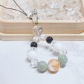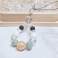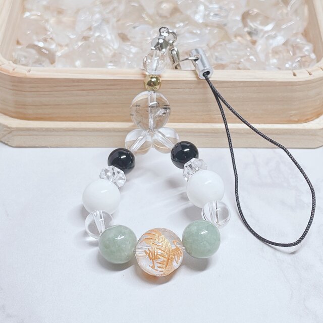 初詣・神社仏閣への参拝に◎ 水晶金龍・翡翠・モリオン 天然石ストラップ No.832S|浄化・守護・邪気払い