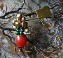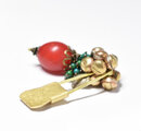 深紅エチオピアンチェリーとたわわな鈴&クリソコラ、アフガンパーツのランドリーピンブローチ