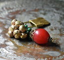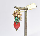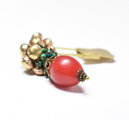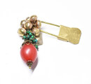 深紅エチオピアンチェリーとたわわな鈴&クリソコラ、アフガンパーツを繋いだランドリーピンブローチです。