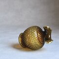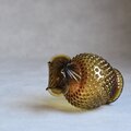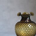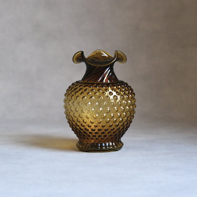 1950年代に制作されたアメリカのIndiana Glass社製のフラワーベース。凹凸のあるホブネイルデザインに鼈甲色のグラデーションが美しい佇まい。花の色をより美しく見せてくれそうな色合いです。高さ約20cm程のブーケをそのまま飾れそうなサイズ感も魅力。単体としてインテリアのオブジェとしても存在感があります。