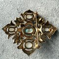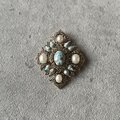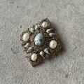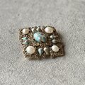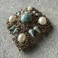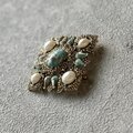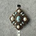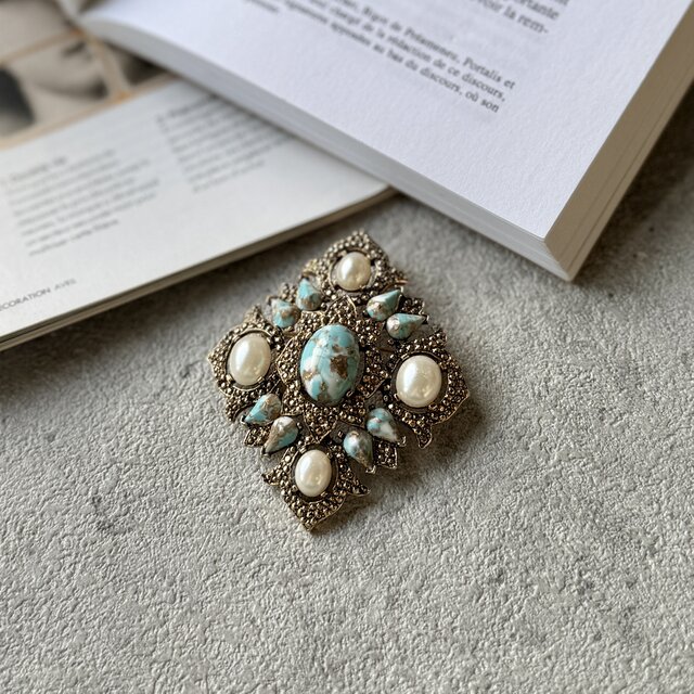 "Remembrance" とタイトルの付いた、フェイクターコイズが印象的な大ぶりブローチ。