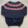 中細の糸を使用し、ネイビーを基調に赤と白を効かせたトリコロールカラーの丸ヨークセーターです。