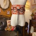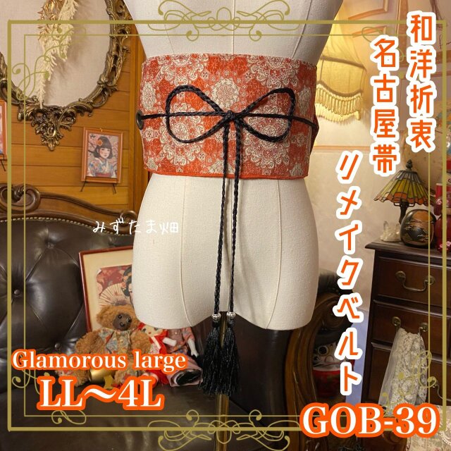 【名古屋帯リメイク サッシュベルト 飾り帯 和洋折衷 ウエストマーク ハンドメイド レトロ 古着 LL〜4L 飛翔する祝福 GOB-39】