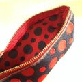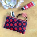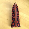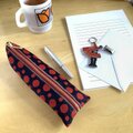 赤と黒の水玉柄の畳のヘリで作ったペンケースです。