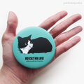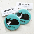 ハチワレ猫さんのイラストと「NO CAT NO LIFE!」(猫のいない人生なんて考えられない!)の文字の入った大きめの缶バッジです