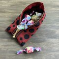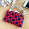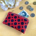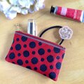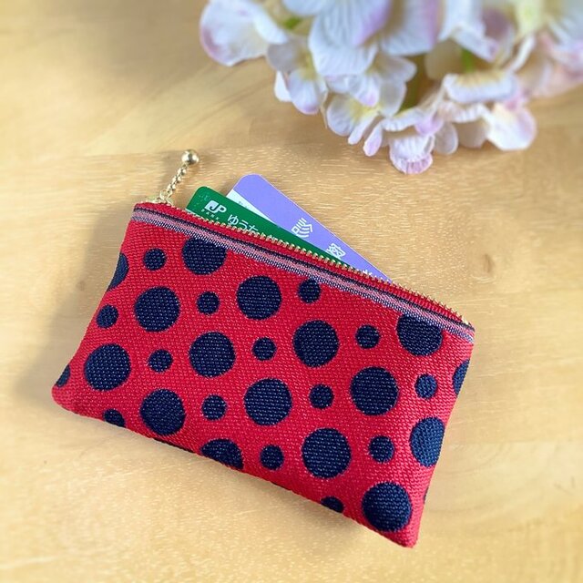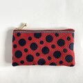 赤と黒の個性的な水玉柄の畳のヘリで作ったミニポーチです。