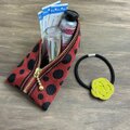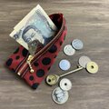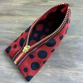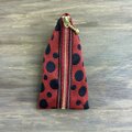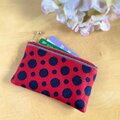 赤と黒の個性的な水玉柄の畳のヘリで作ったミニポーチです。