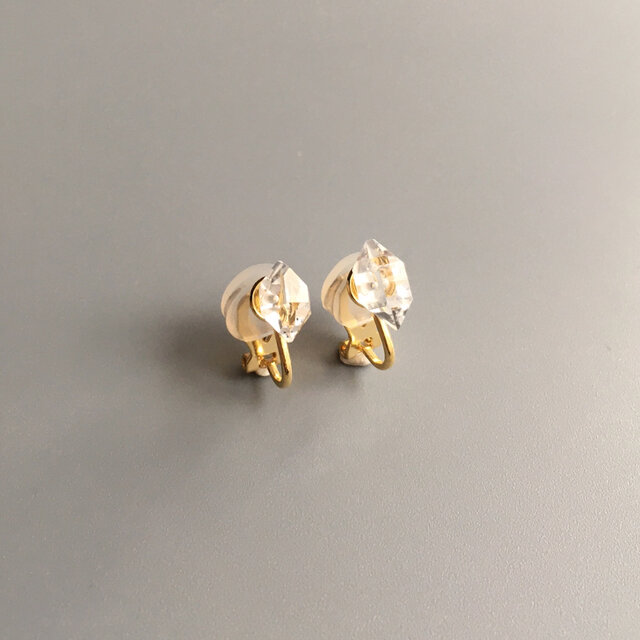冬に合う透明感が美しいハーキマーダイヤモンドのピアス バネ式イヤリング