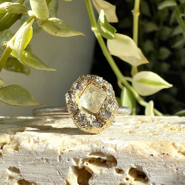ダイヤリング、このようなデザインができるんですね! 欠片とは言え、光が当たると小さな石が各々光って、さすがダイヤという感じです。 特別な誕生石リングになりました。