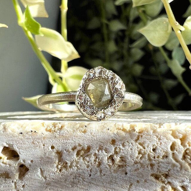ダイヤリング、このようなデザインができるんですね! 欠片とは言え、光が当たると小さな石が各々光って、さすがダイヤという感じです。 特別な誕生石リングになりました。