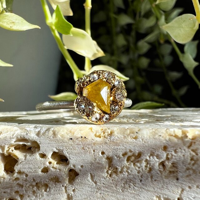 ダイヤリング、このようなデザインができるんですね! 欠片とは言え、光が当たると小さな石が各々光って、さすがダイヤという感じです。 特別な誕生石リングになりました。