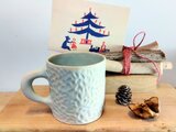 ストレートなフォルムでスタンダードな形のマグカップにUROKO模様が彫り込んであります。淡い水色でマットな質感。寒い季節コーヒー紅茶はもちろん、温かいココアなんてどうでしょう。真冬の夜のなごみの一杯に、くつろぎのひと時のオトモにおすすめ。