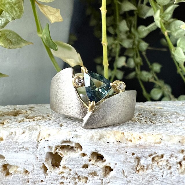 ダイヤリング、このようなデザインができるんですね! 欠片とは言え、光が当たると小さな石が各々光って、さすがダイヤという感じです。 特別な誕生石リングになりました。