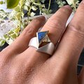 先程 届きました。エメラルドがとても綺麗で 人とかぶらない個性的なリングです。ありがとうございました。