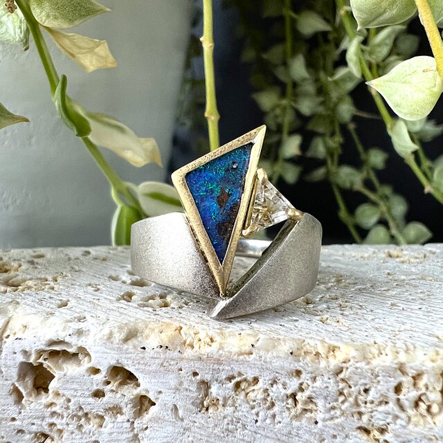 シャープなボルダーオパールとカラーレスに近いサファイヤを使用したTreasureChest