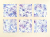 透明感を意識して描いた水彩画の雪の結晶6種類をデータ化して画面いっぱいに散らしています。