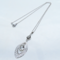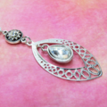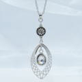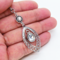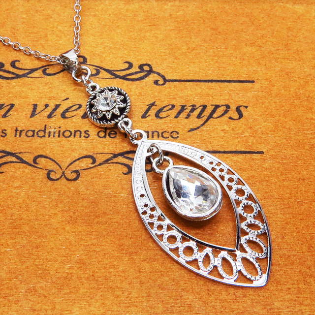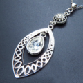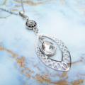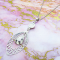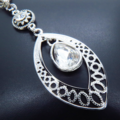透かしアラベスク調のティアドロップ(しずく)のネックレス ガラス シルバーカラー ステンレス可 長さ調節可