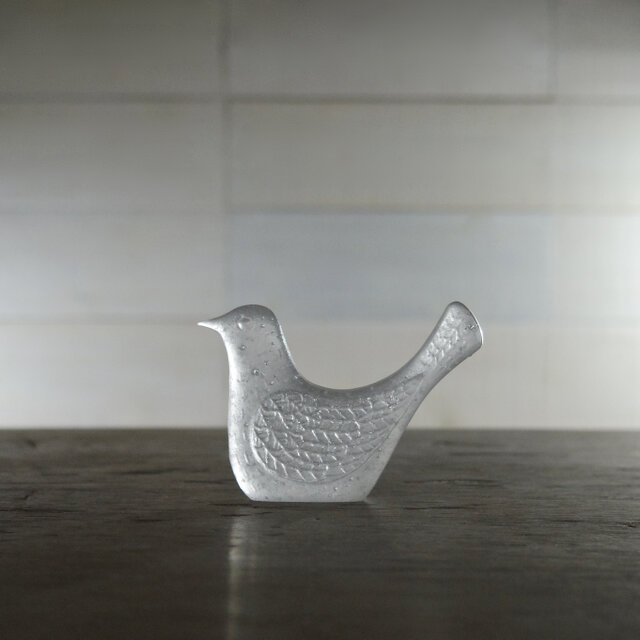 小鳥をモチーフにした 冬のガラスのオブジェ。