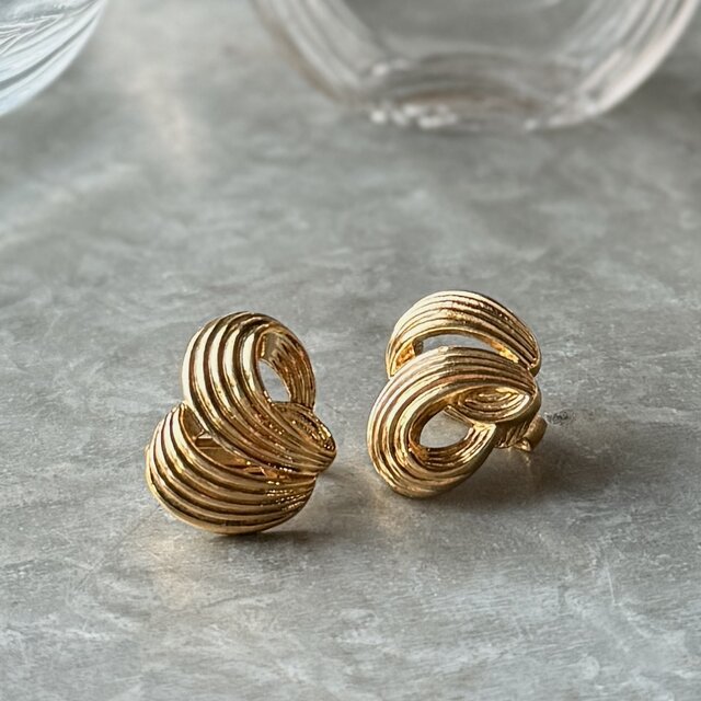 YA217-【 AVON 】エイボン・ヴィンテージイヤリング 1970〜80's Gold Tone Swirl Knot