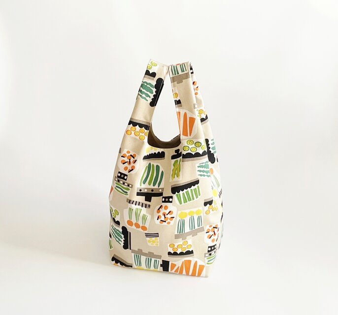 日常に、彩りを。北欧風ピクルス柄のマルシェバッグ|ライトベージュ