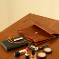 素材にはコシと耐久性のある牛革を使用し、カラーは落ち着いたブラウン。