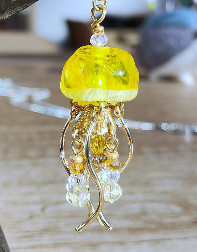 バーナーでガラスを溶かし傘を作り、そこから多彩なパーツを使い口腕を組み立てる一点物のくらげを作っています。あなたのお気に入りを見つけに来てください♪