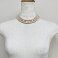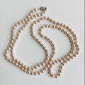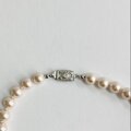 オールノットネックレスの特徴として、万が一糸が切れた場合でも最小限で抑えられる点や、玉同士が密着していないので擦れあいにくく傷も付きにくい点・又首回りにフィットしやすくなっている点等がございます。この仕様は特に海外で人気があり、比較的高品質アクセサリー類によくみられる仕様です。※弊社の自社工場にて塗装したパールになります。品質の状態も維持されており、剥がれや大きな目立った傷などもございません。稀にピンホールや小さい凹み等が見られる場合がございますが、自社にて検品の上、品質に問題は無く許容範囲とさせて頂いております。