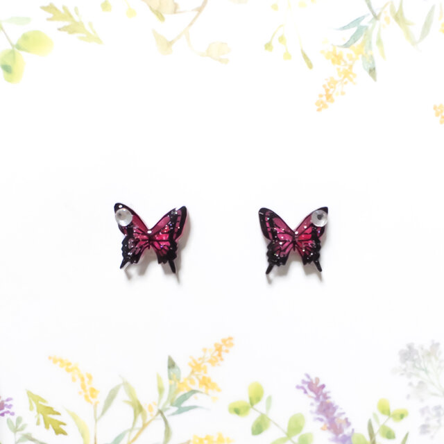 【新色】~小さなピアスシリーズ~アゲハ蝶(紅)ピアス/ノンホールピアス(樹脂イヤリング)