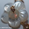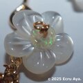 白梅は白蝶貝のものを使用して、花芯にエチオピア産プレシャスオパールのロンデルを添えました