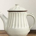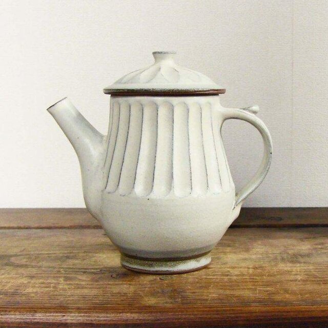 素地に「しのぎ」を施し化粧泥を掛けてから蘭越釉を施釉して焼成しています。