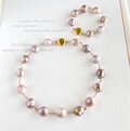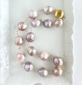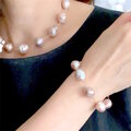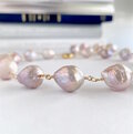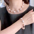 クリスマス価格 シュリンク大粒淡水パール ステーション チョーカーネックレス&ブレスレット ライトモーヴ ラベンダー