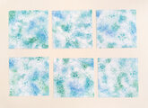 透明感を意識して描いた水彩画の雪の結晶6種類をデータ化して画面いっぱいに散らしています。