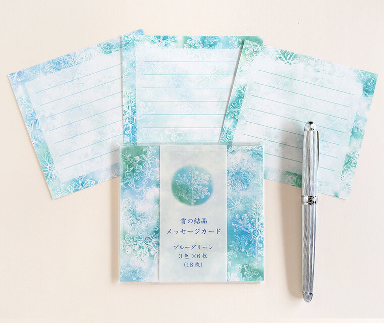 こちらはブルーグリーン3色が入ったメッセージカード18枚です。