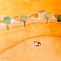 インテリア インテリアアート イラスト イラストレーター アナログイラスト 北欧インテリア 原画 手描きイラスト 一点物 風景画 猫