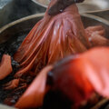 ・草木染はアルカリ・酸に反応すると変色してしまいます。レモンなどの酸のものにはご注意ください。