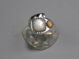 リングのサイズは15.5号、重さは9g、最大幅は17mm、手のひら側の幅は6mm、金属部分は純銀です。