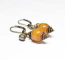 ツートン琥珀色アフリカンアンバーと民族鈴のピアス(楕円)